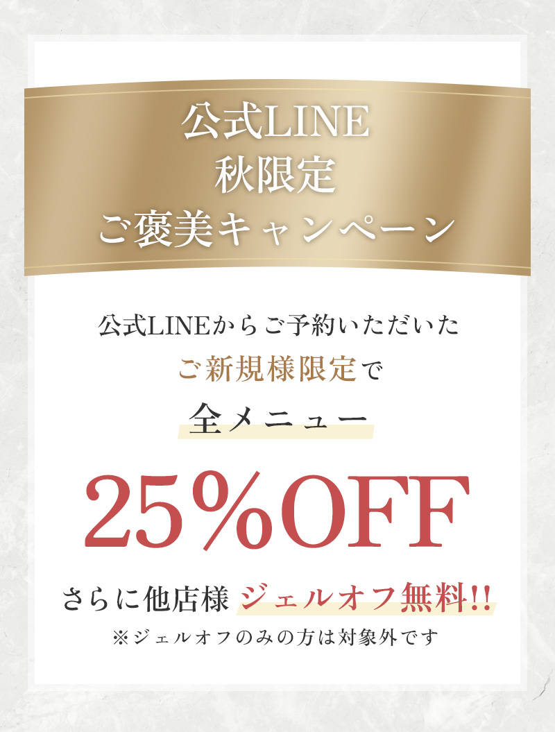 当店はスピード重視ではなく丁寧な施術を心がけております。ネイルを取り外したときの亀裂の有無やお爪の状態により個人差がありますが(補強が必要か否か、長さ出しのご希望の有無)ワンカラーで90分の施術時間をいただいております。