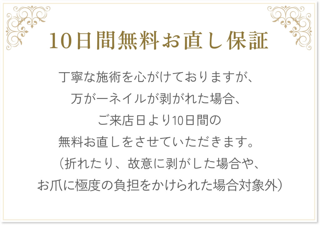 はい、長持ちします。当店には反り爪のお客様もいらっしゃいますが、実際に1ヶ月近くネイルが長持ちしております。「私の爪だとどうかな…?」と気になる方は、ぜひ一度ご相談ください。